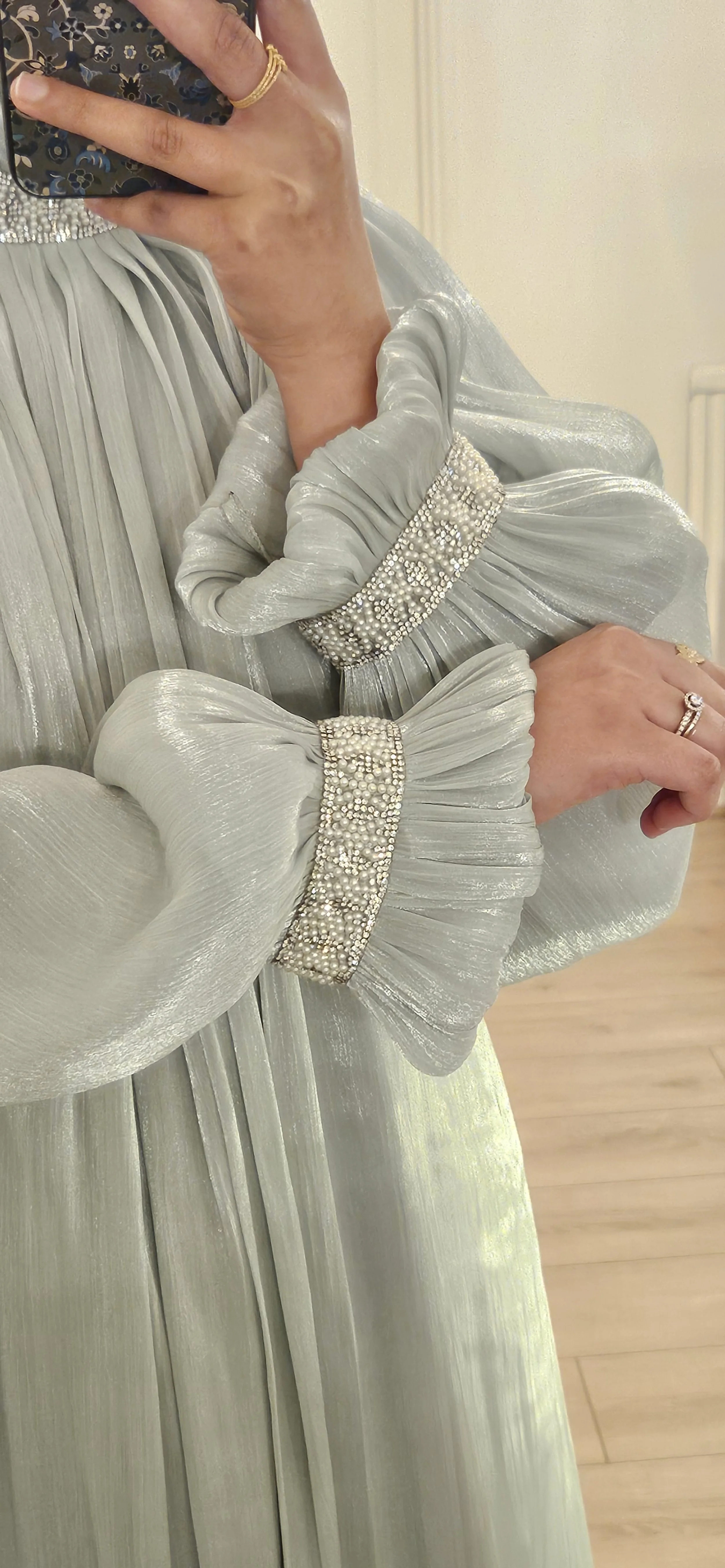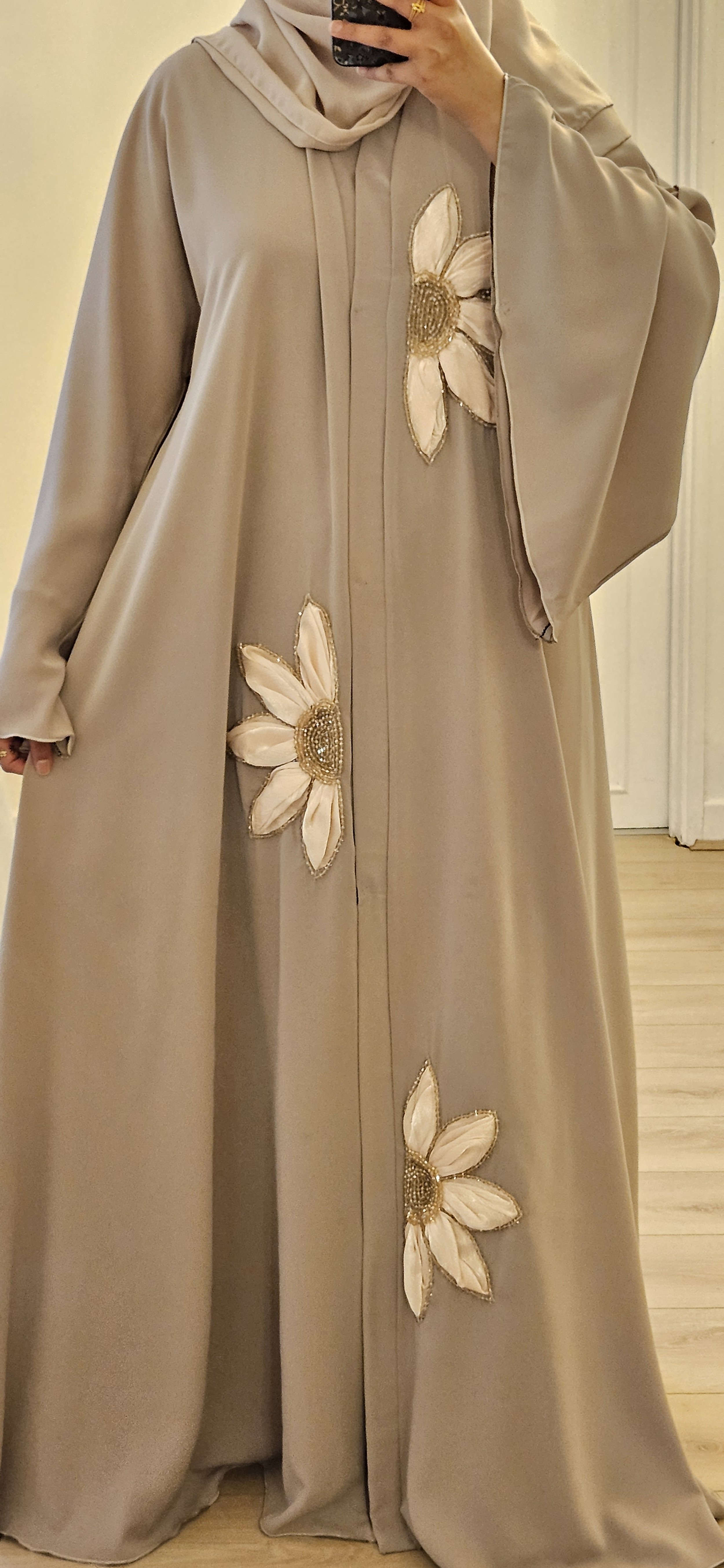 This abaya is designed to have a look of sophistication and elegance. Perfect for work wear that can be dressed up or down. This abaya can be worn open or closed as it has buttons.