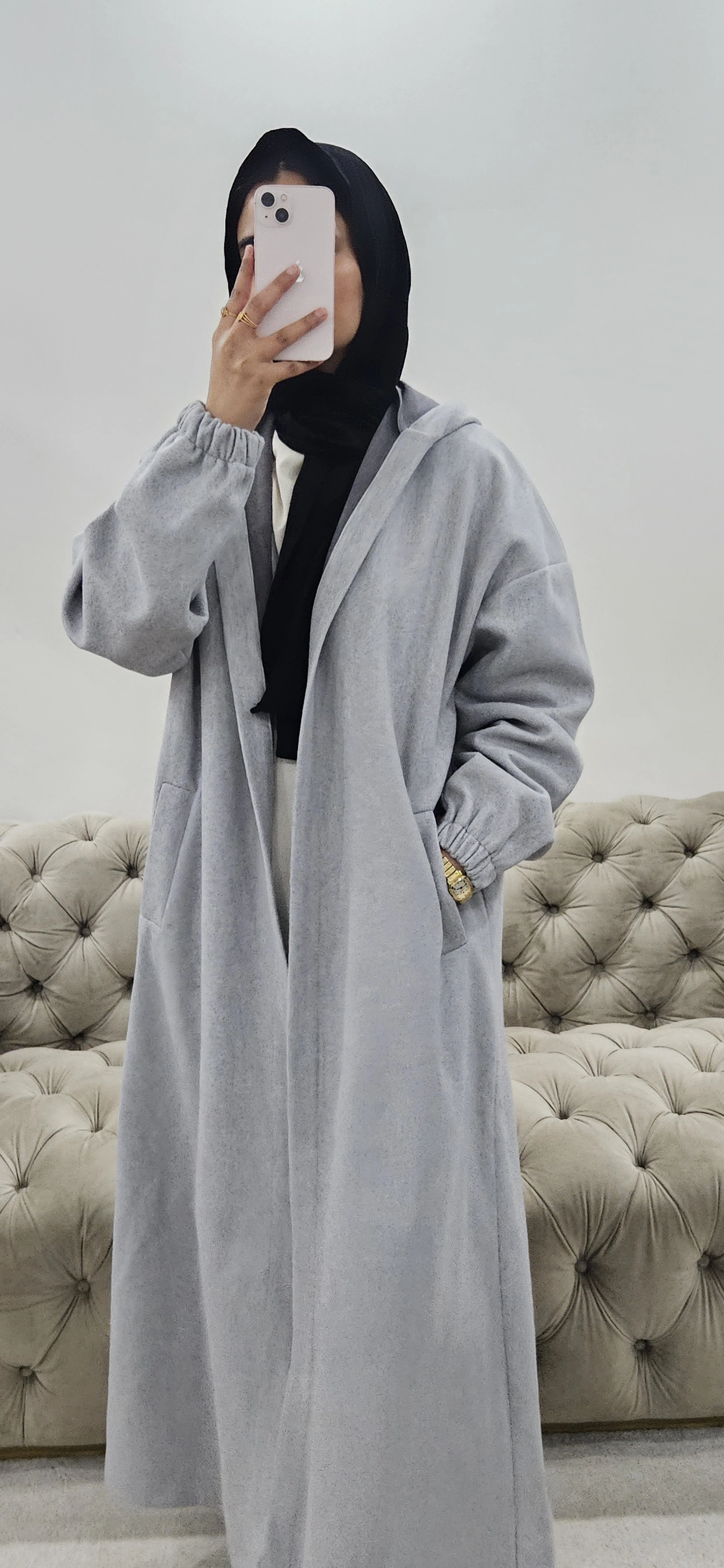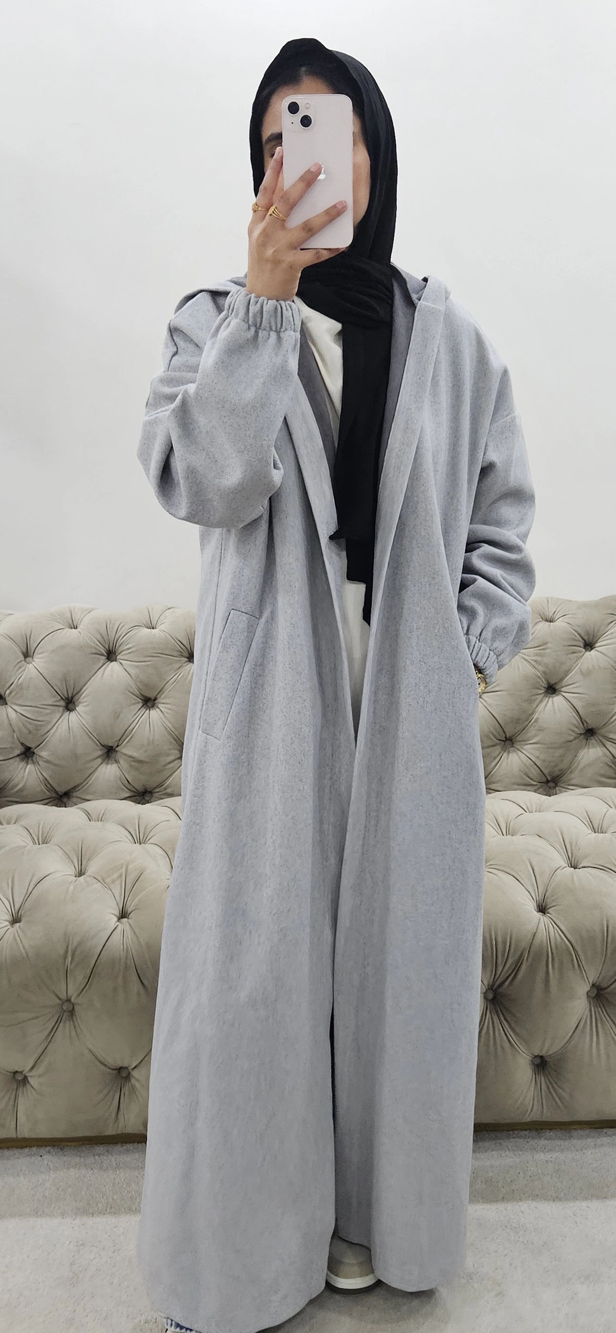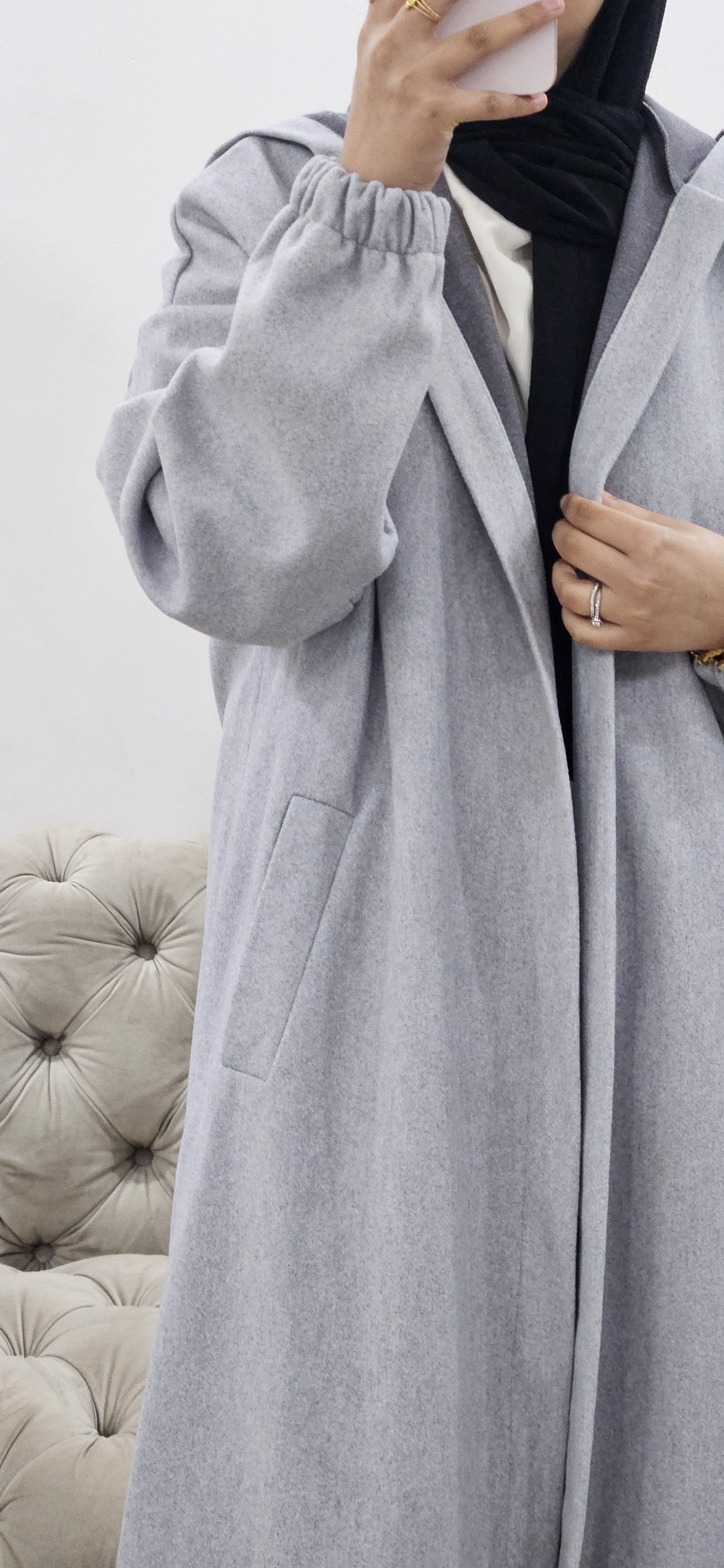 A warm wool abaya coat with 2 pockets and a hood. Perfect for this winter
