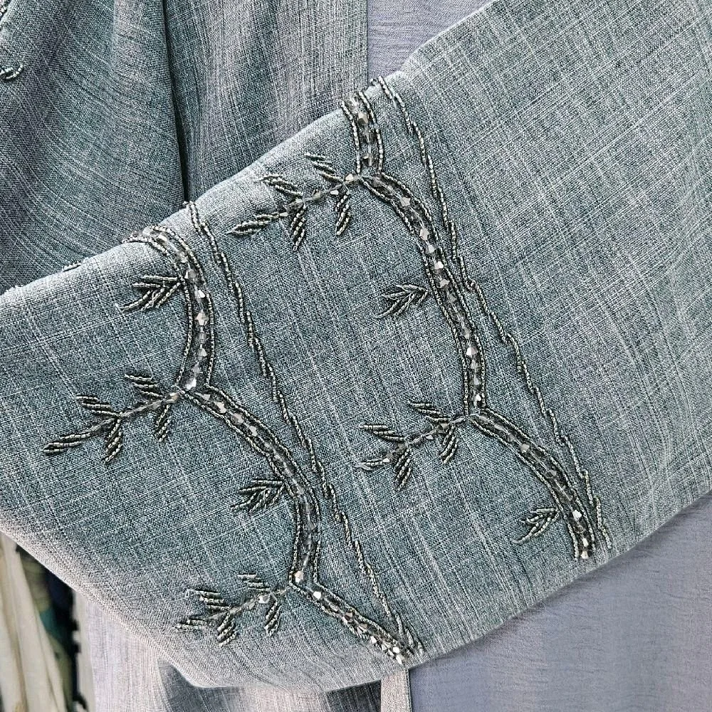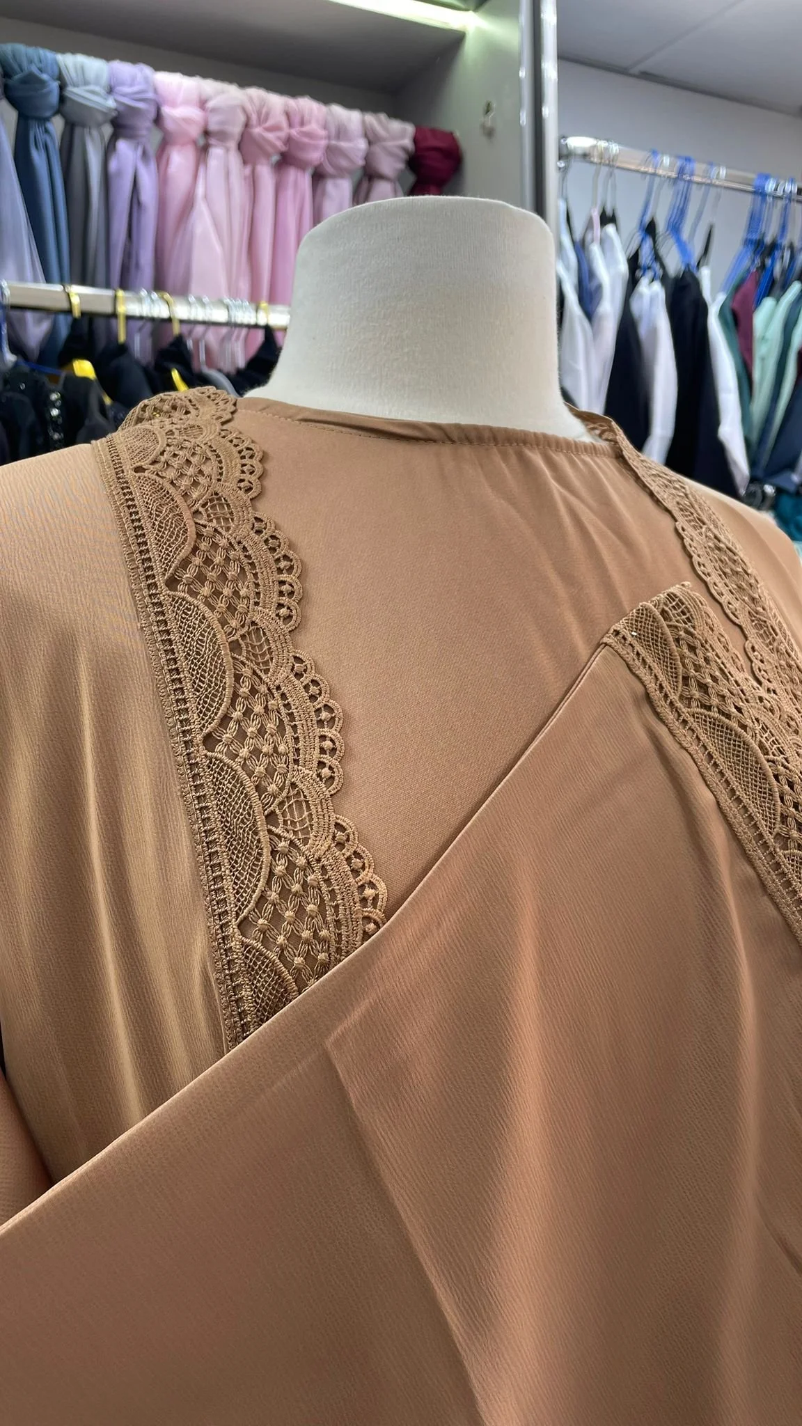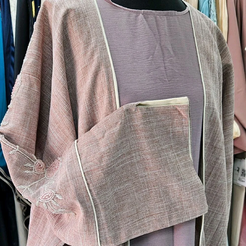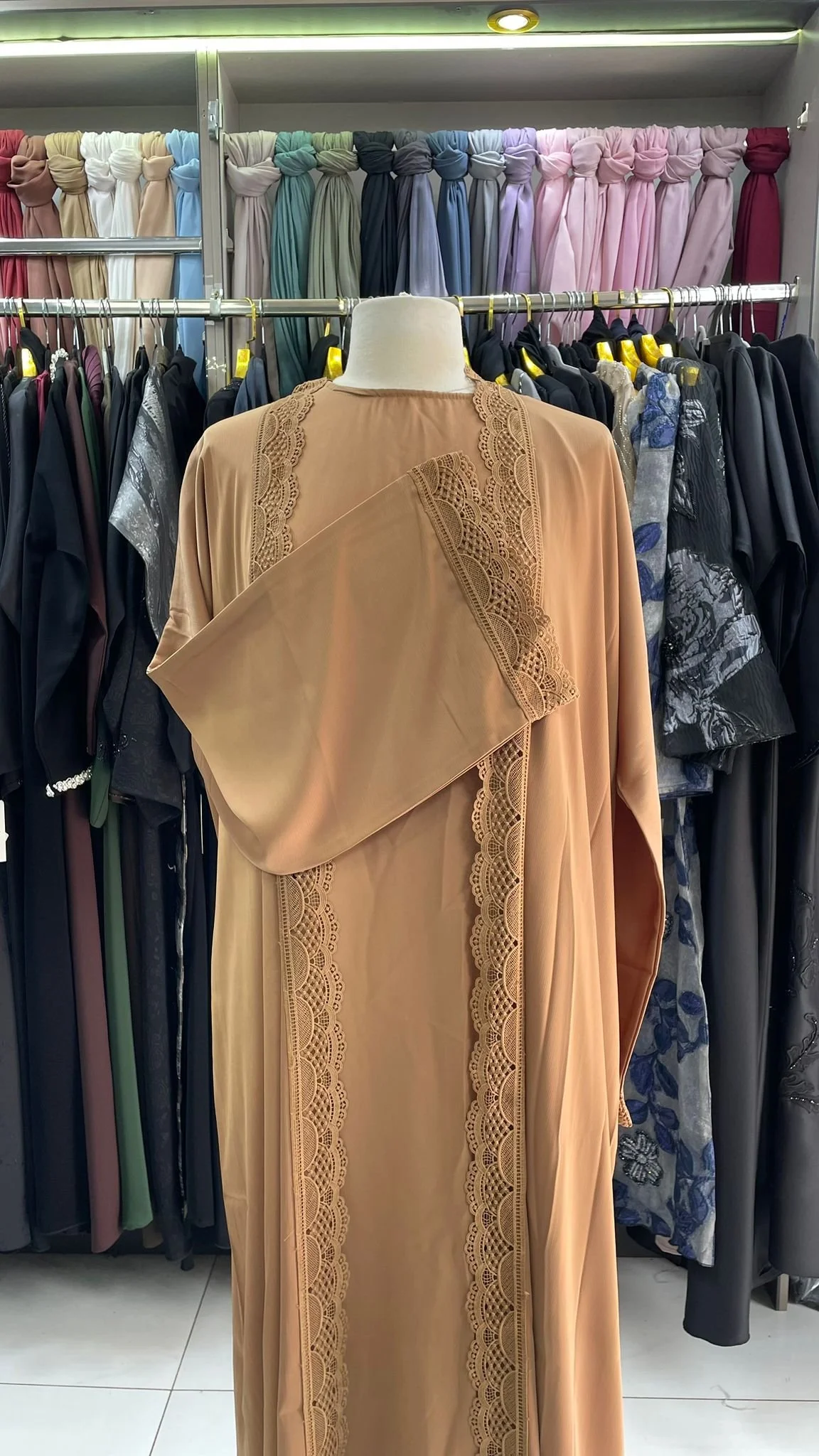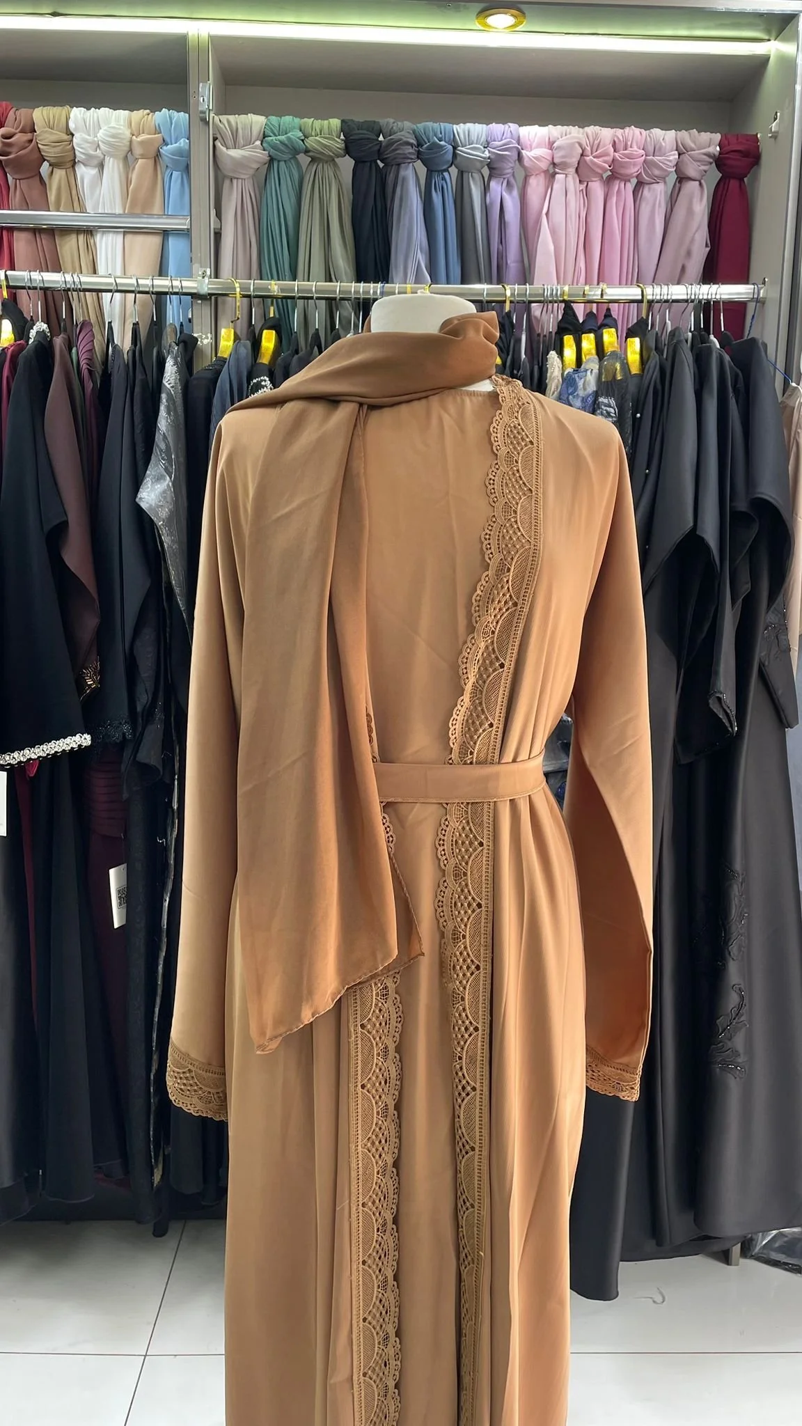 4 piece abaya with outer abaya, slip dress, hijab and belt