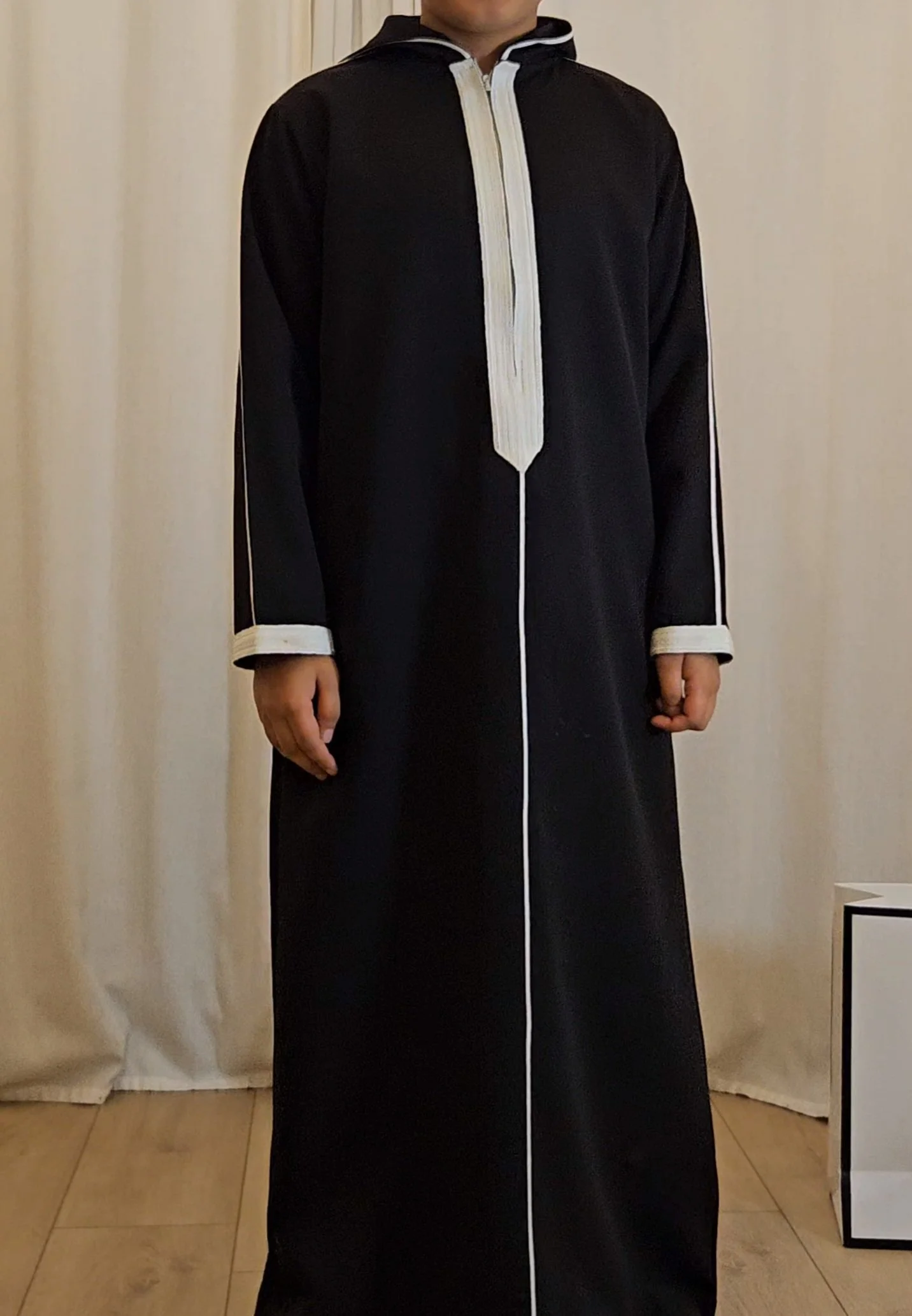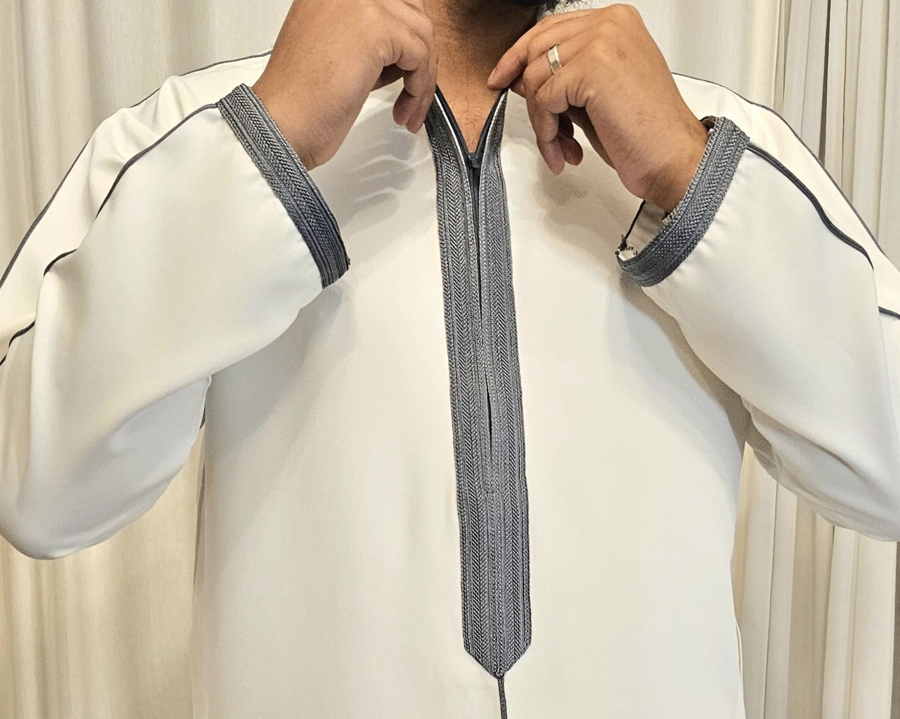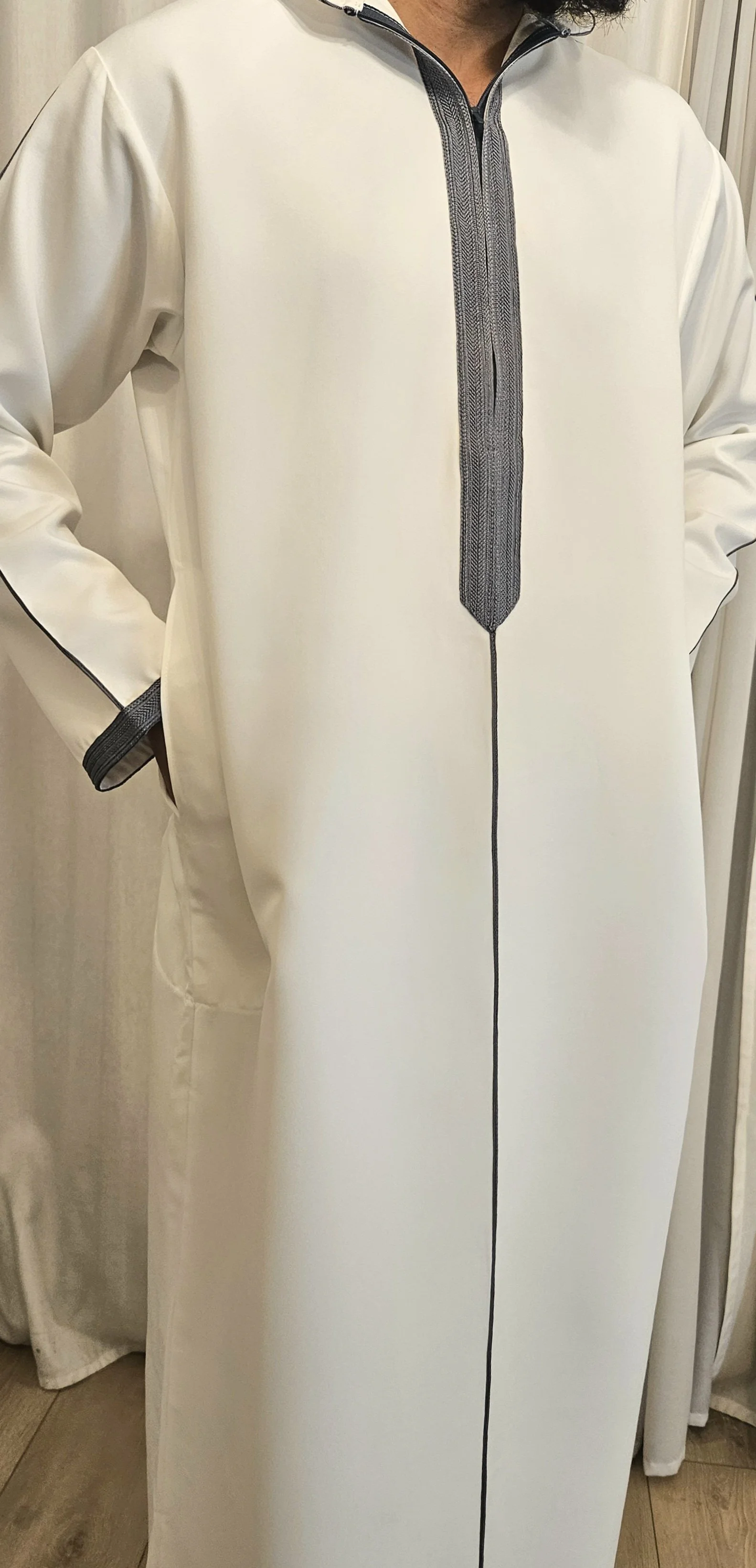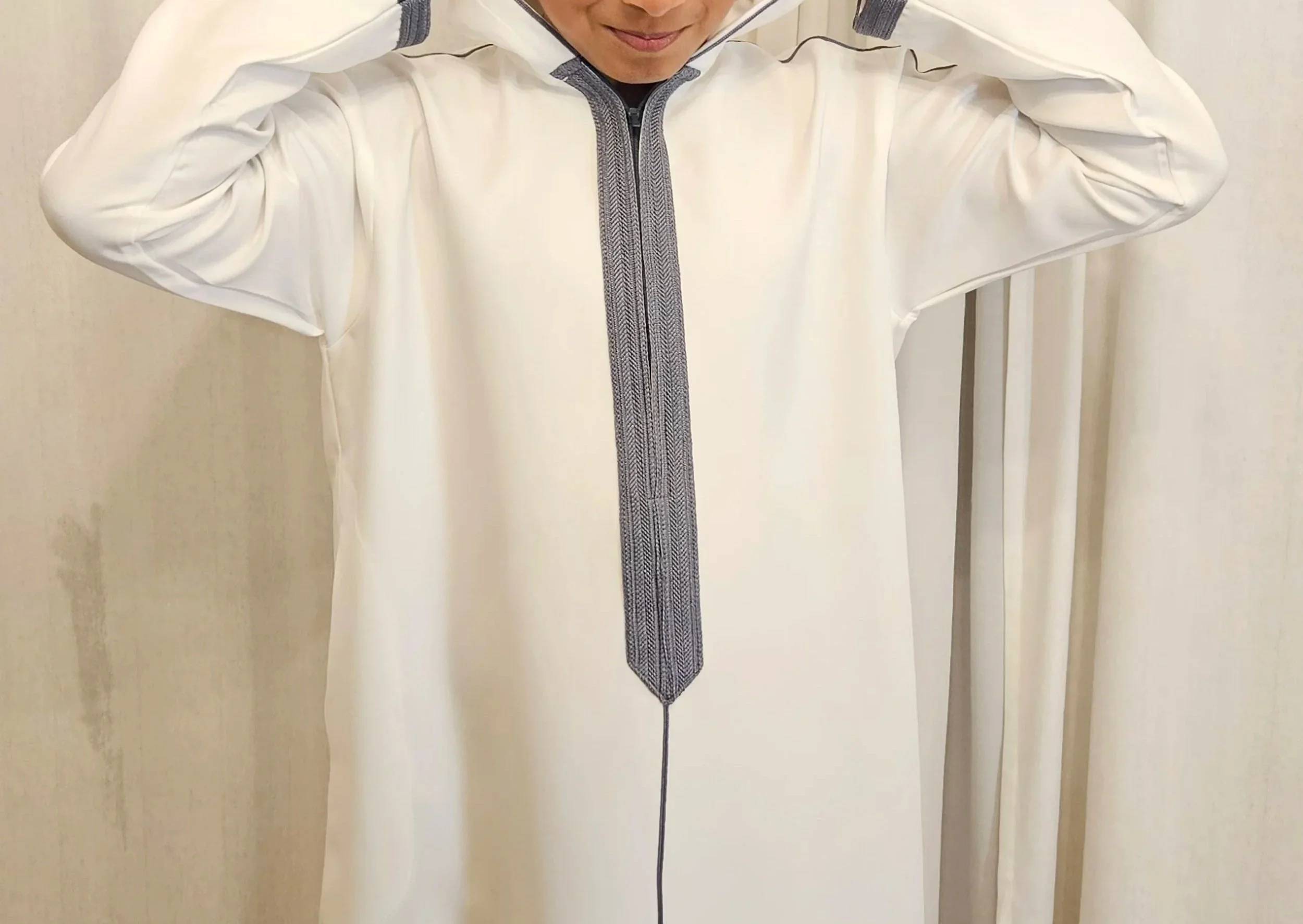 The pearl white men's thobe with a hood and zip combines traditional elegance with modern functionality. Crafted from high-quality, breathable fabric, this thobe offers a sleek charcoal shade that complements all skin tones. The addition of a hood adds a contemporary twist, providing extra coverage and style, perfect for casual or semi-formal occasions. A discreet, smooth-running zip allows easy wear and removal while maintaining the garment’s clean lines.